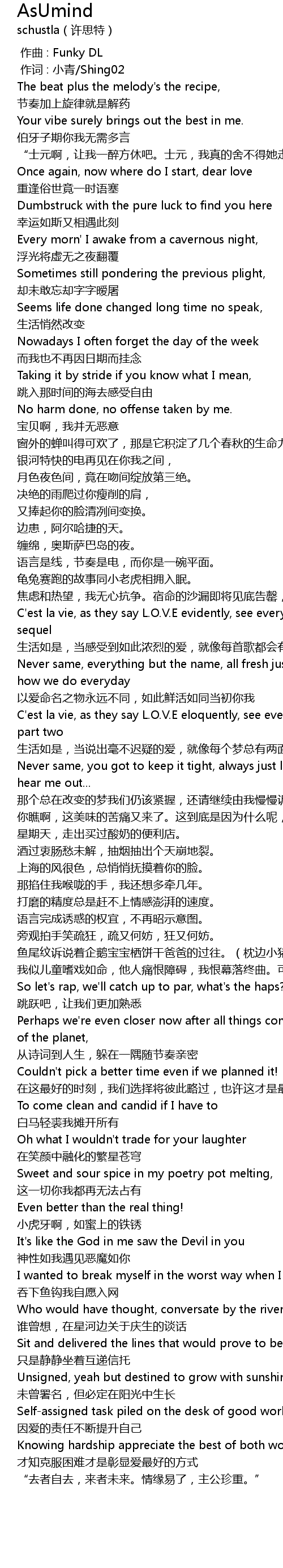| 歌曲 | AsUmind |