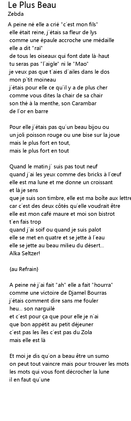 | 歌曲 | Le Plus Beau |