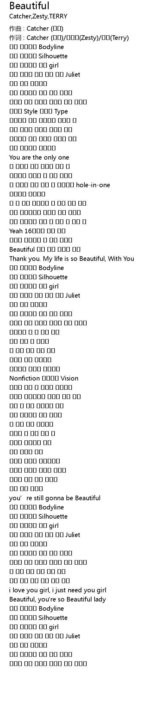 作词 : Catcher (캐쳐)/제스티(Zesty)/태리(Terry) |