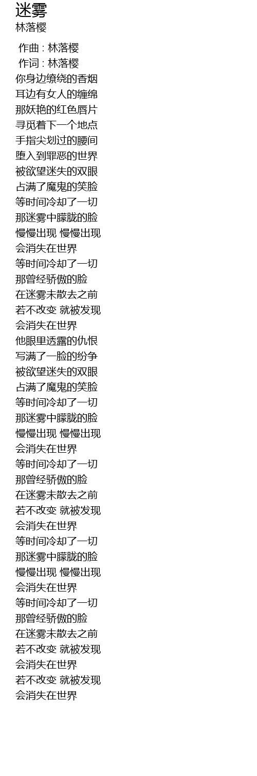 | [01:50.26] | 那迷雾中朦胧的脸 |