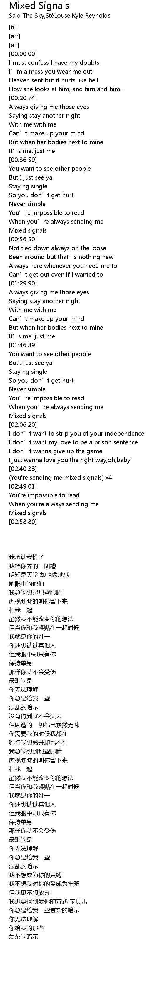 | [00:54.42] | Mixed signals |