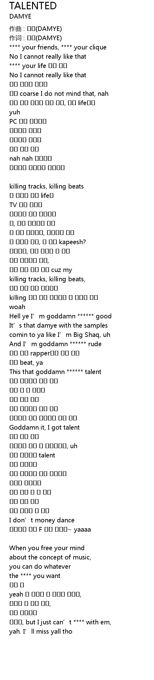 | This that goddamn ****** talent | |