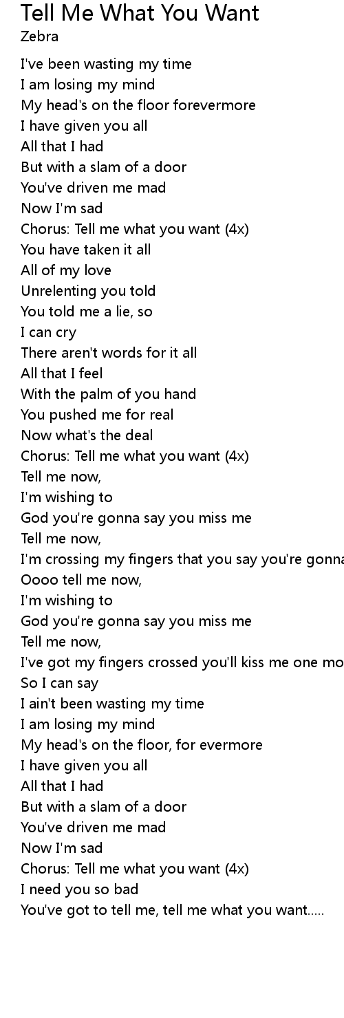 | Chorus: Tell me what you want (4x) | |