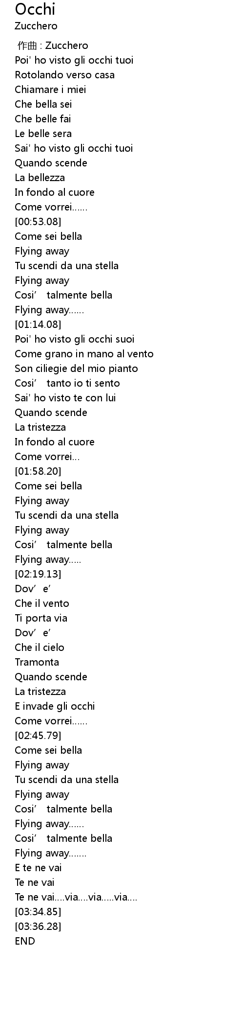 | [00:14.34] | Poi' ho visto gli occhi tuoi |
