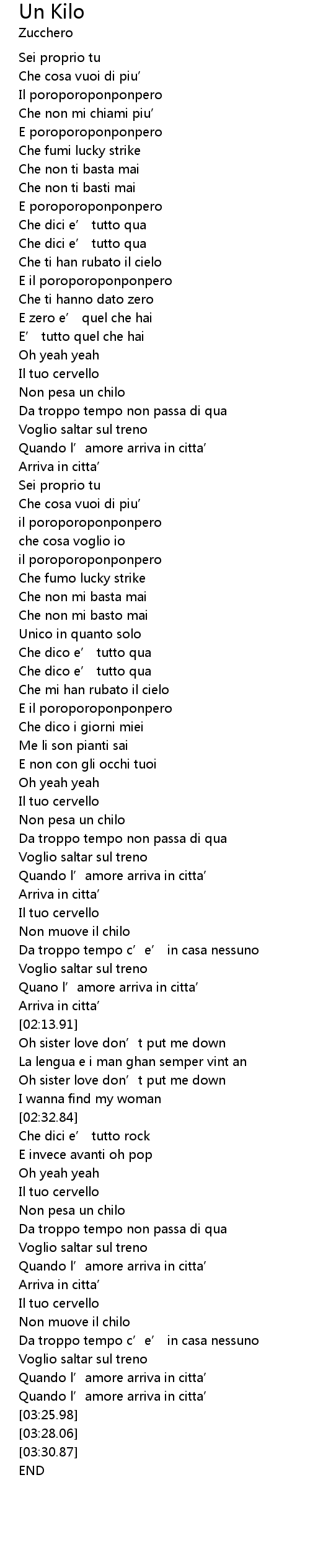 | [01:58.78] | Non muove il chilo |