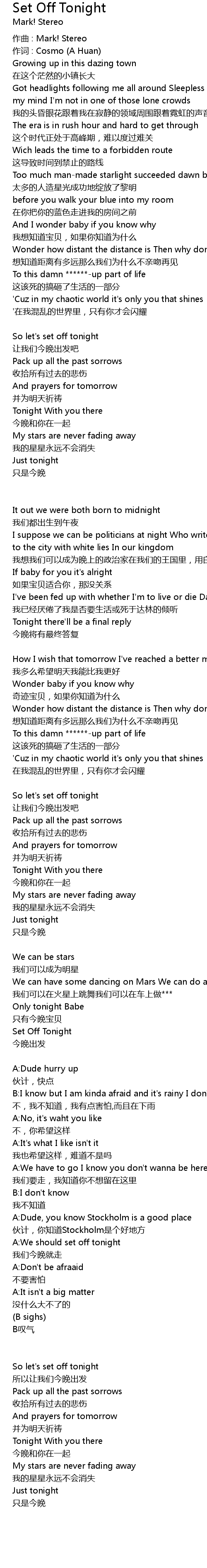 | suǒ yǐ ràng wǒ men jīn wǎn chū fā | |