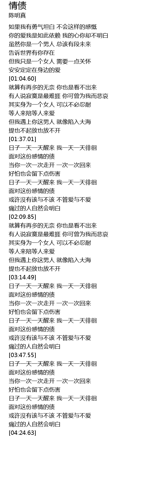 | [04:12.69] | 面对这份感情的债 |