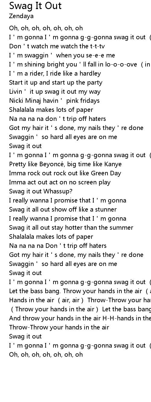 | [00:17.540] | I'm gonna I'm gonna g-g-gonna swag it out (x5) |
