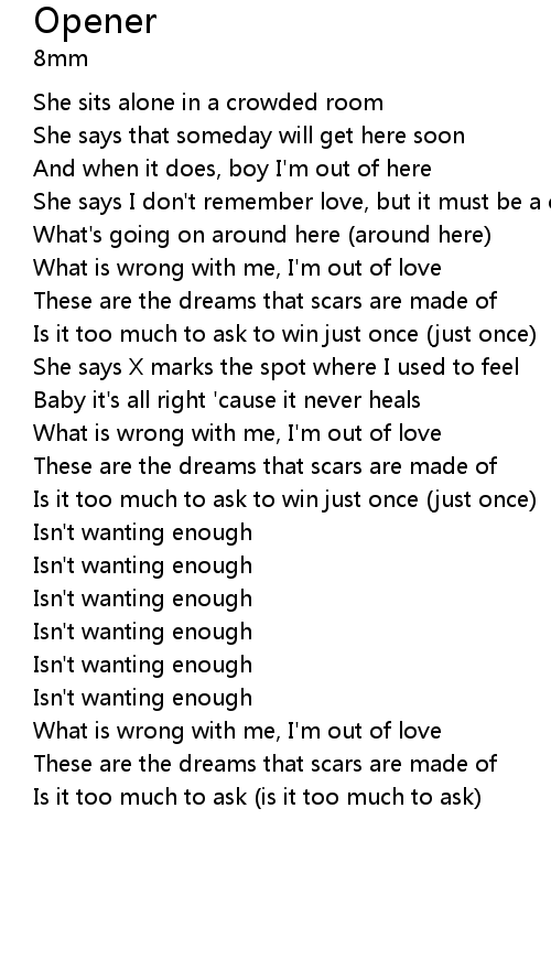 | [02:03.96] | These are the dreams that scars are made of |