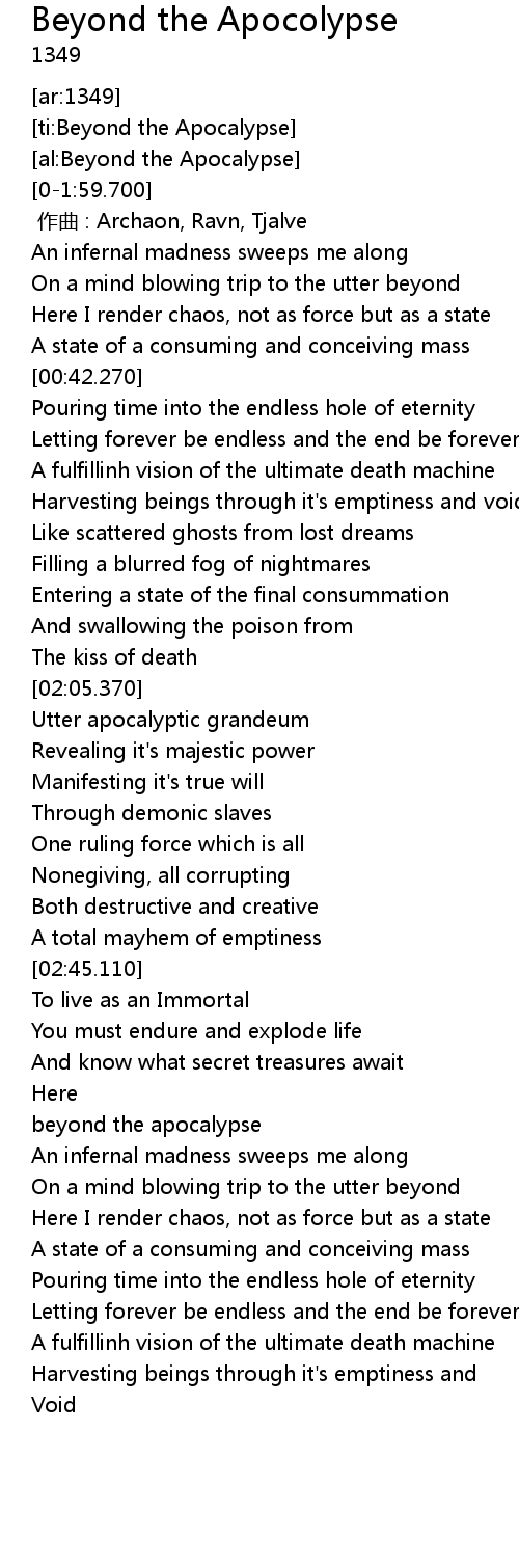 | [00:00.00] | 作曲 : Archaon, Ravn, Tjalve |