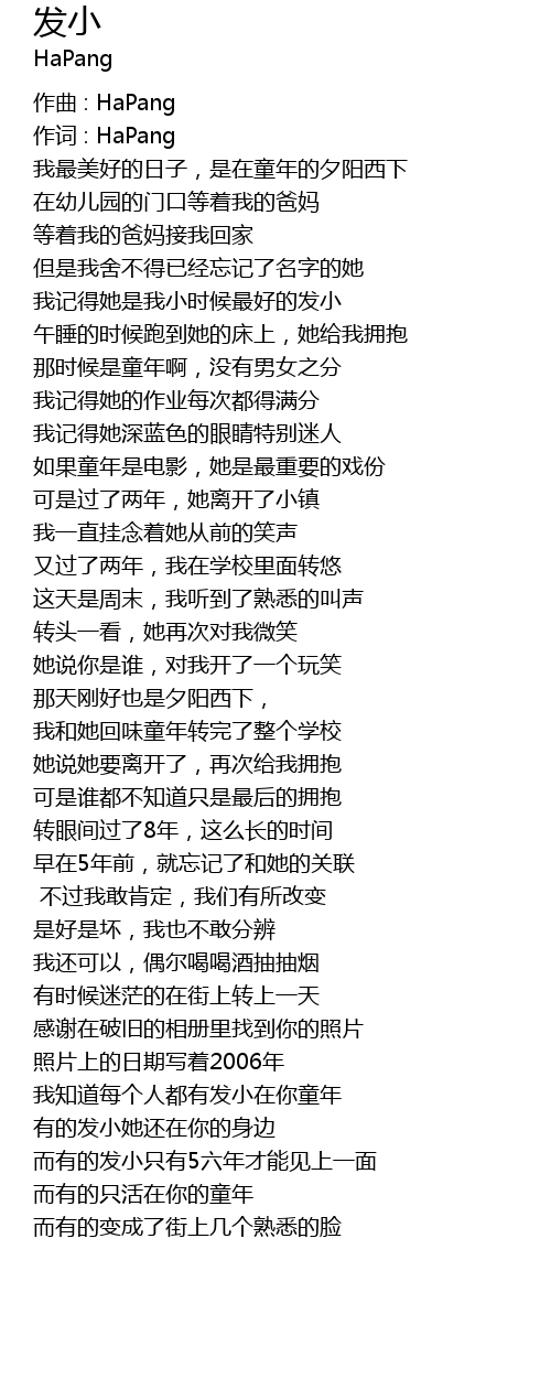 | wǒ zhī dào měi ge rén dōu yǒu fà xiǎo zài nǐ tóng nián | |
