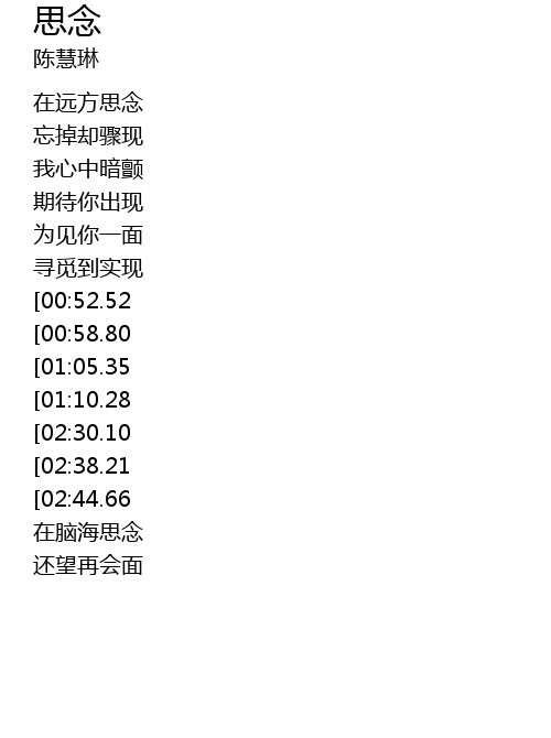 | [00:14.29] | zài yuǎn fāng sī niàn |