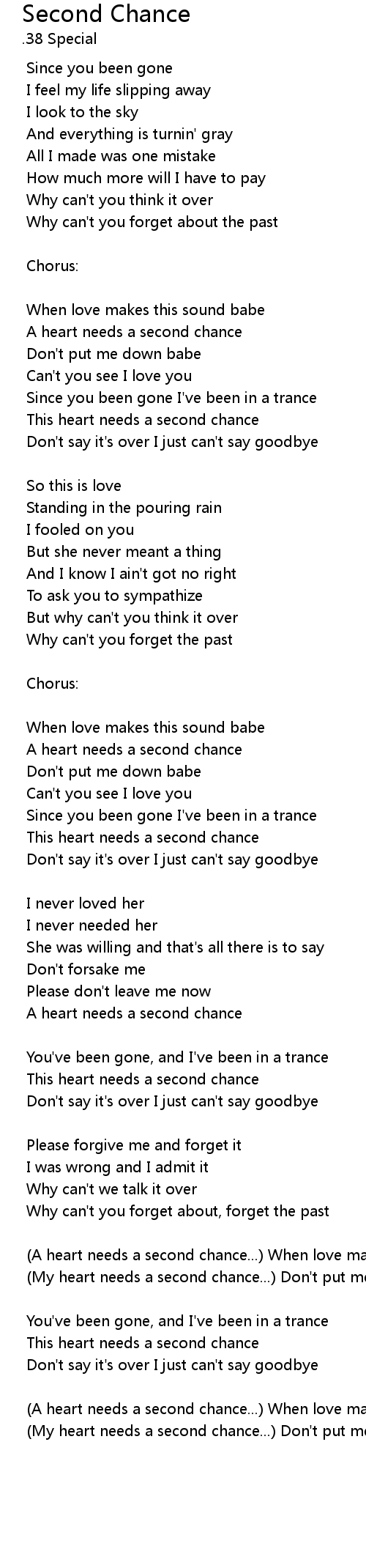 | My heart needs a second chance... Don' t put me down, babe | |