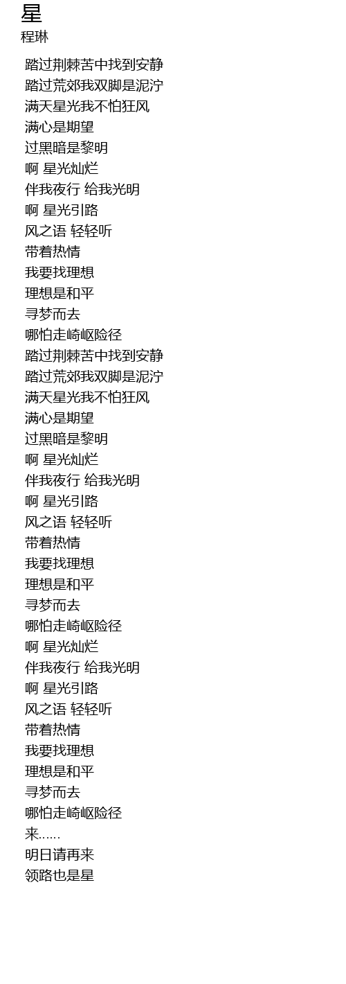 | 歌曲 | 星 |