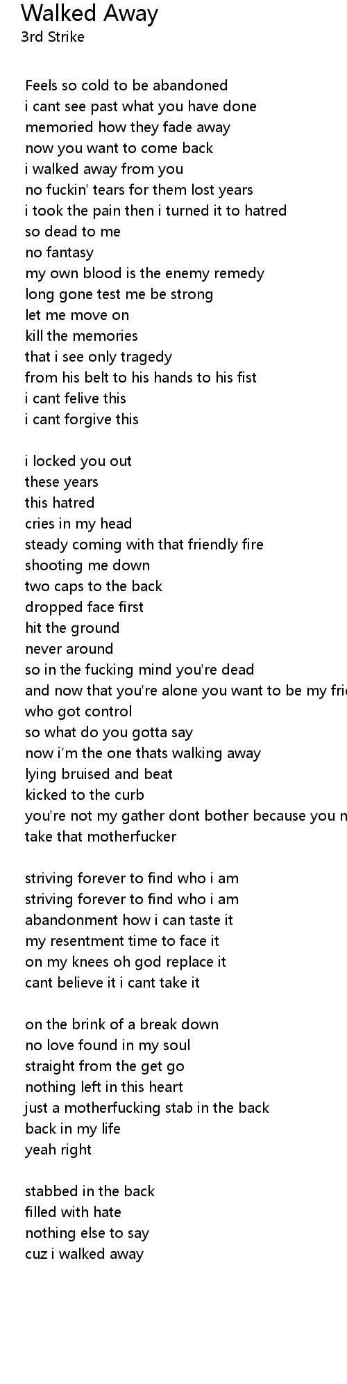 | cuz i walked away |