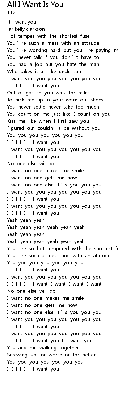 | [01:33.62] | I want you you you you you you you |