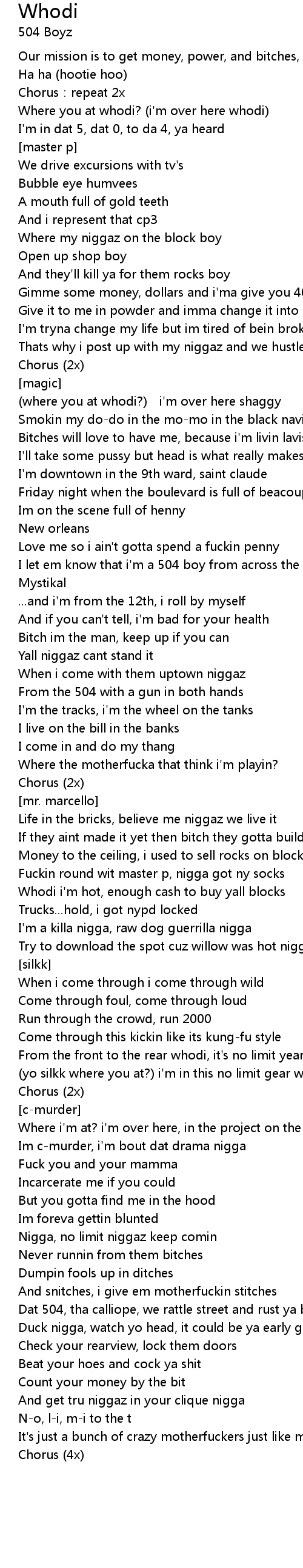 | yo silkk where you at? i' m in this no limit gear whodi | |