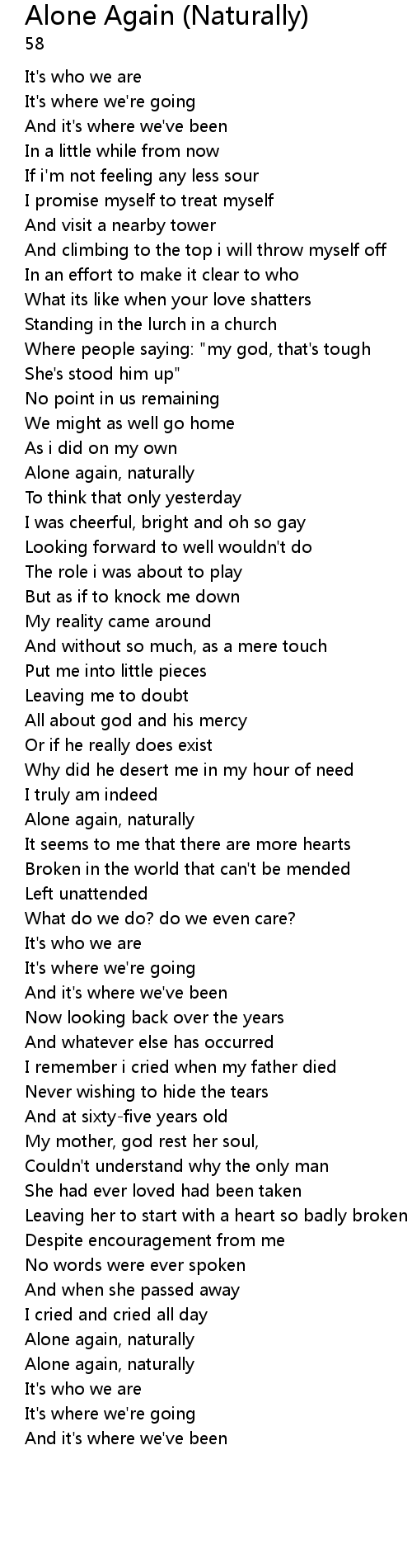 Alone again, naturally |