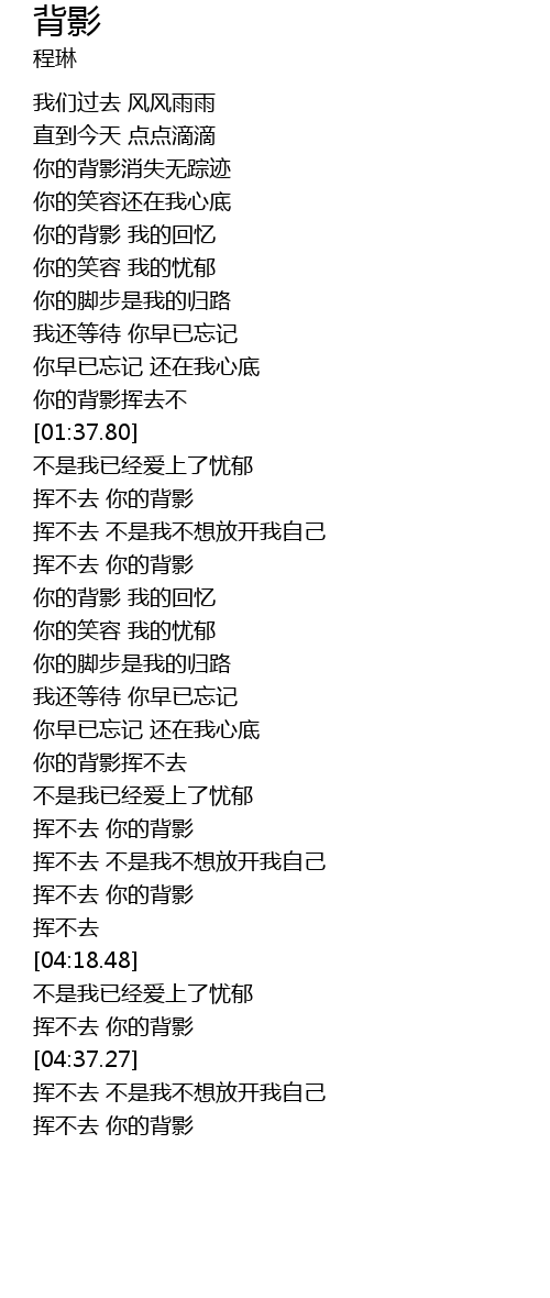 | [00:45.45] | nǐ de bèi yǐng wǒ de huí yì |