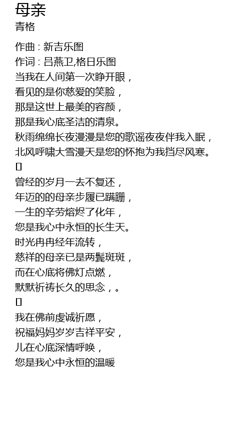 | zhù fú mā mā suì suì jí xiáng píng ān, | |
