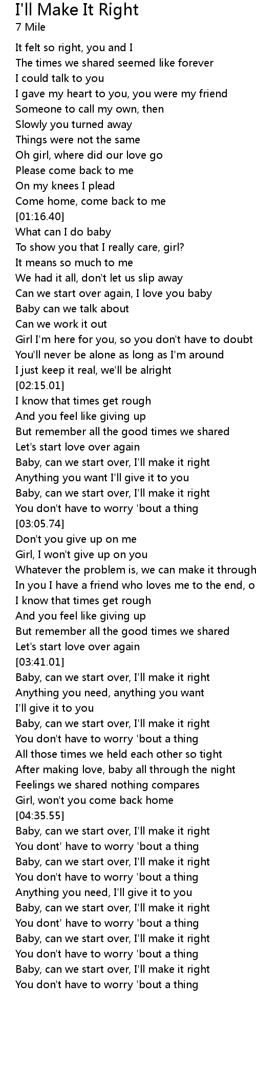 | [04:53.25] | Baby, can we start over, I'll make it right |