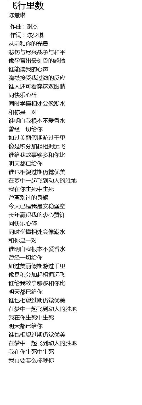 | 歌曲 | 飞行里数 |