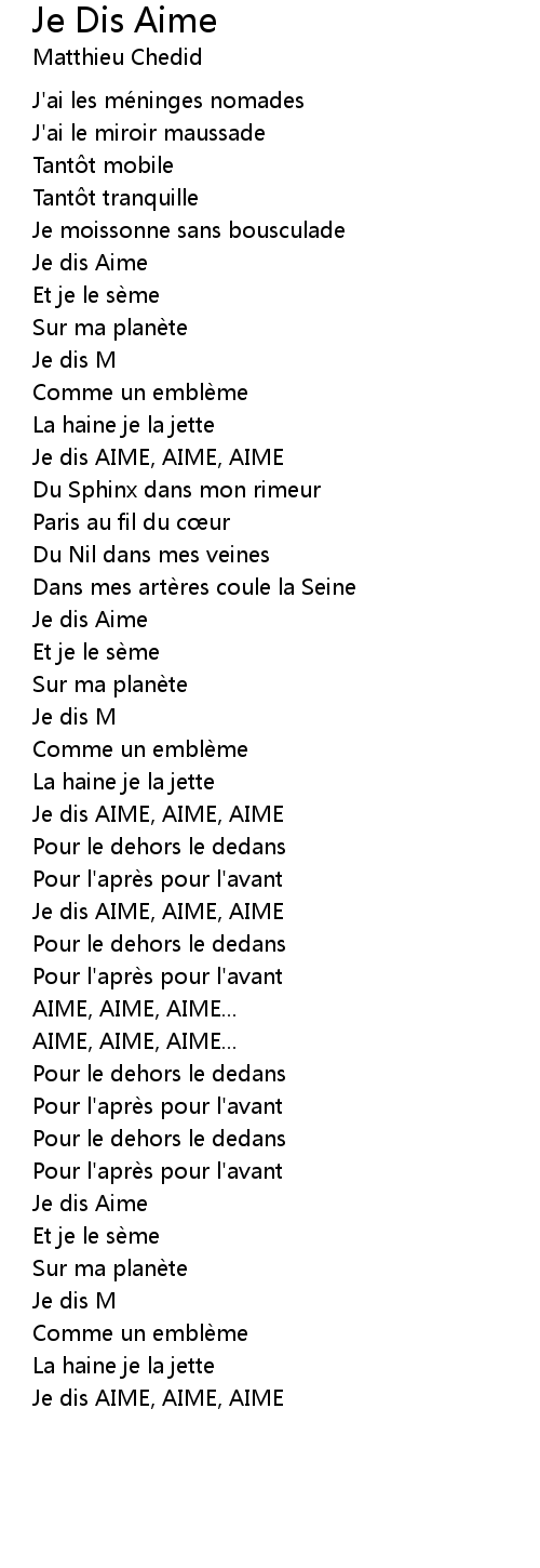 | Je dis AIME, AIME, AIME | |
