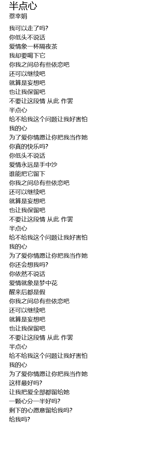 | [03:06.000] | 半点心 |