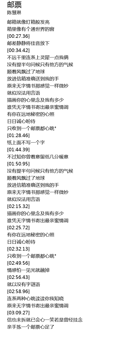 | [03:16.17] | 亲手拣一个邮票心足了 |