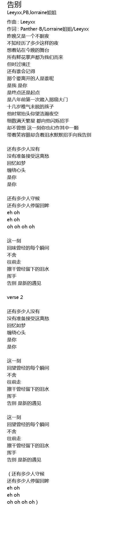 | 作词 : Panther-B/Lorraine姐姐/Leeyxx | |