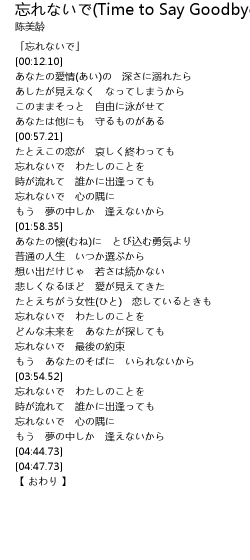 | [04:08.35] | 時が流れて 誰かに出逢っても |