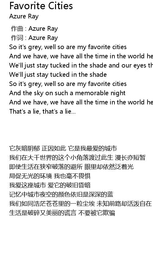 | [00:26.93] | So it's grey, well so are my favorite cities |