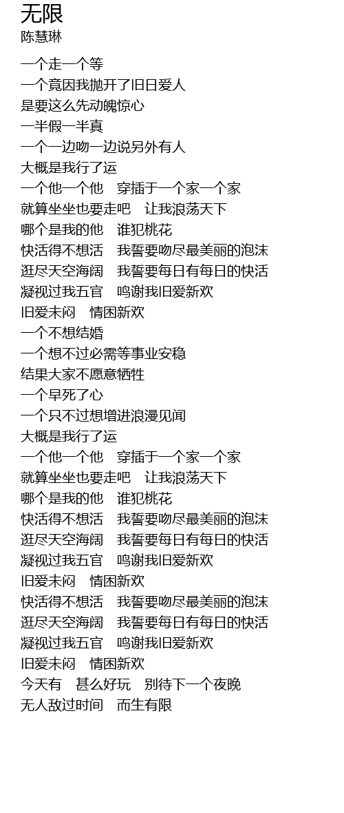 | 歌曲 | 无限 |