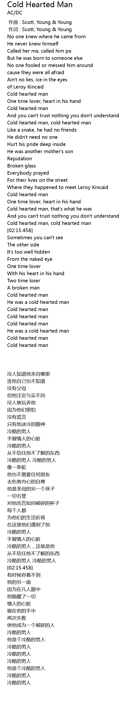 | [02:08.457] | Cold hearted man, cold hearted man |