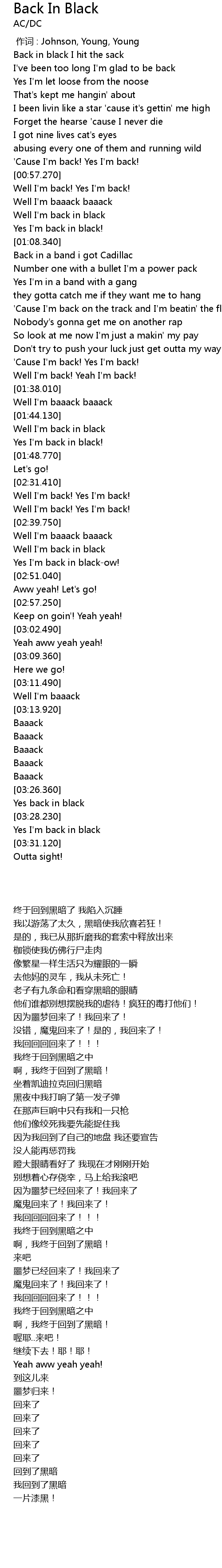 | [02:49.100] | Yes I'm back in black-ow! |