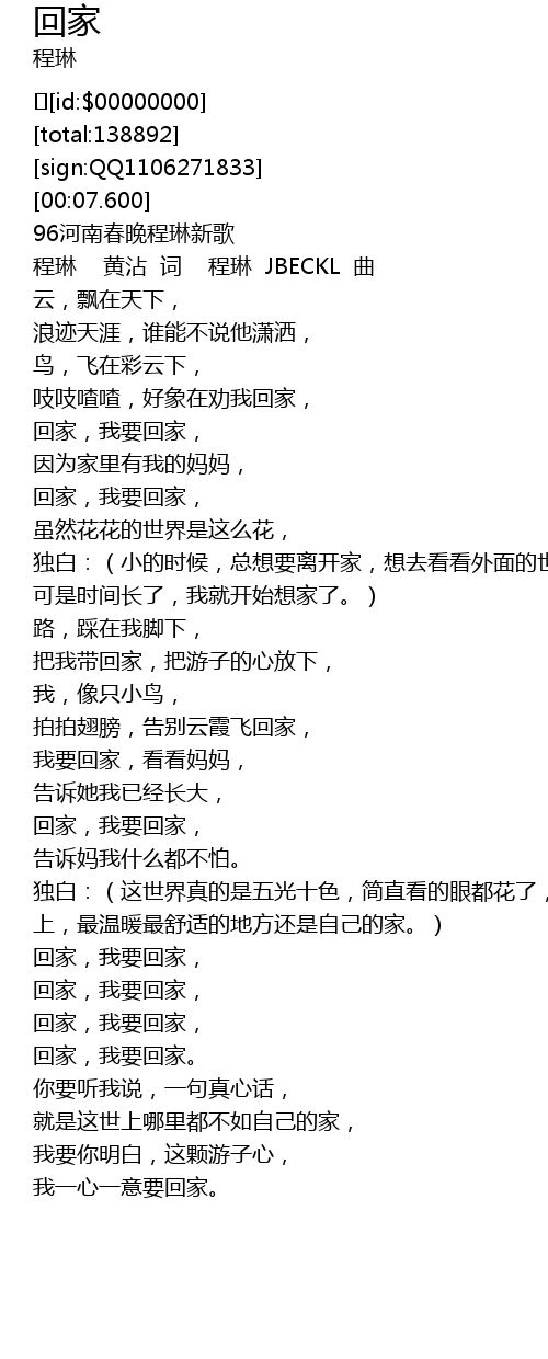 | [00:55.619] | hui jia, wo yao hui jia, |