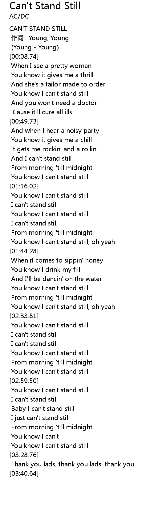 | [02:56.60] | You know I can' t stand still |