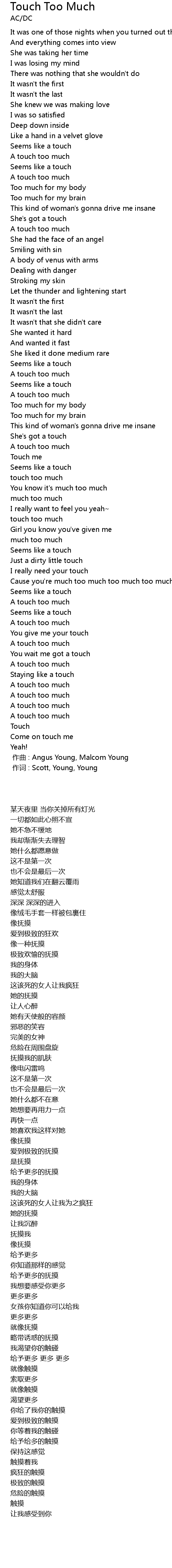 | 歌曲 | Touch Too Much |