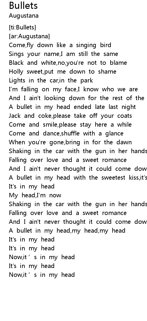 | [02:02.44] | A bullet in my head with the sweetest kiss,it's in my head |
