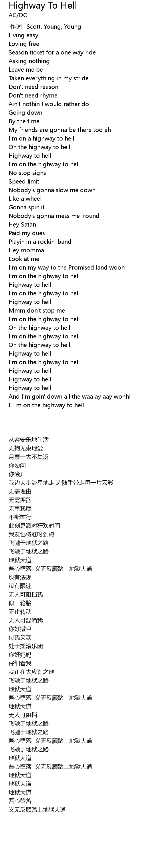 | [00:59.909] | On the highway to hell |