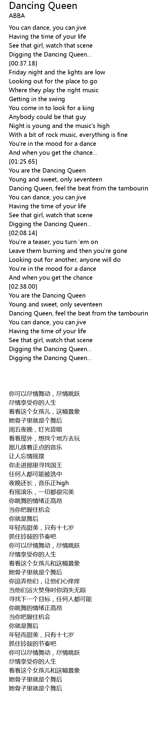 Dancing Queen, feel the beat from the tambourine |