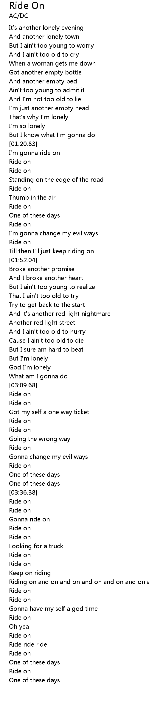 | [03:22.55] | Ride on |