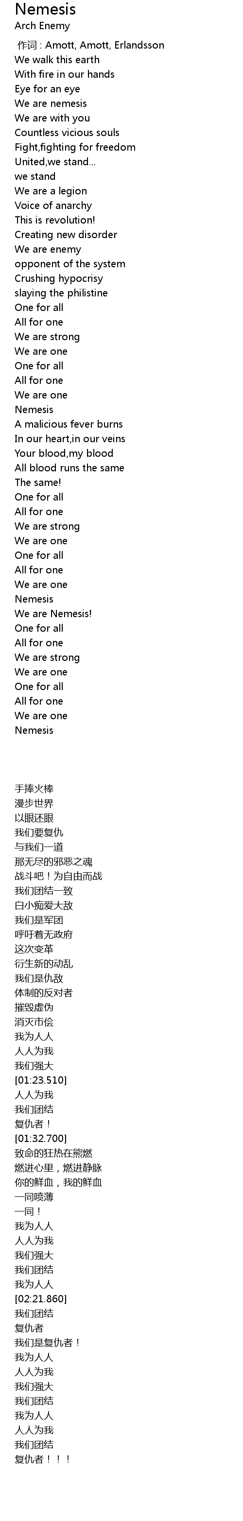 | [00:00.00] | 作词 : Amott, Amott, Erlandsson |