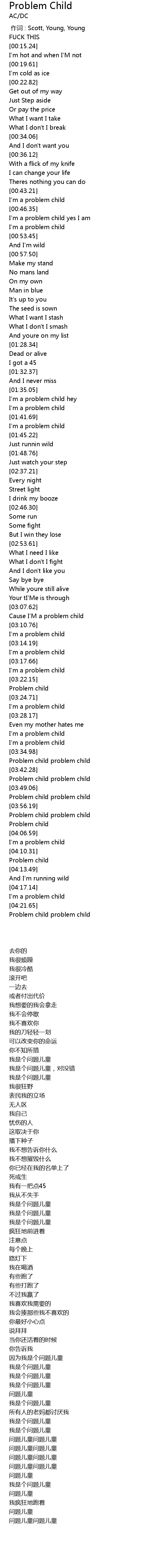 | [00:44.29] | I' m a problem child |