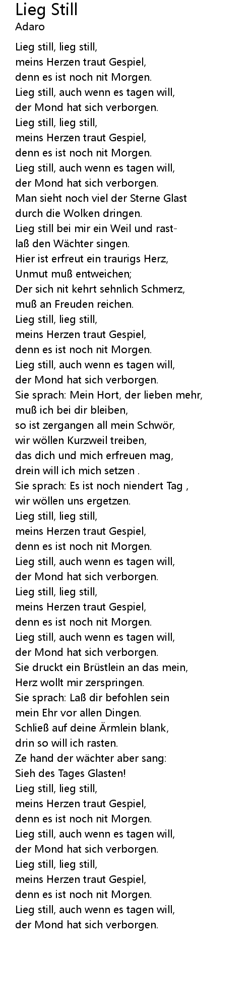 | [03:40.54] | Lieg still, auch wenn es tagen will, |