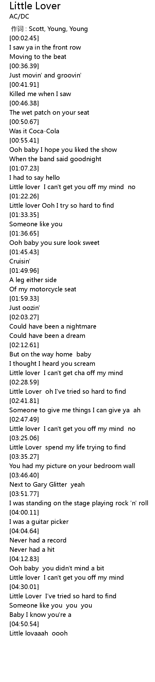 | [02:32.85] | Little Lover oh I' ve tried so hard to find |