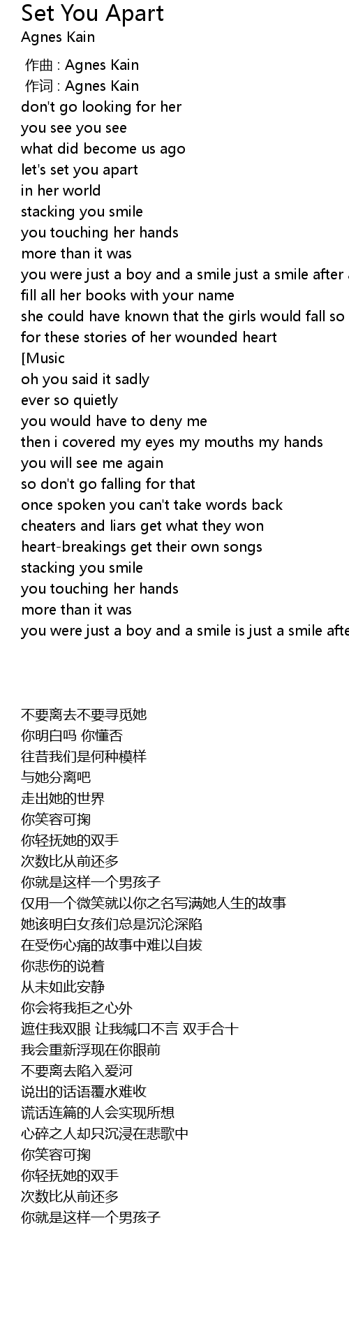| [00:00.00] | zuò qǔ : Agnes Kain |
