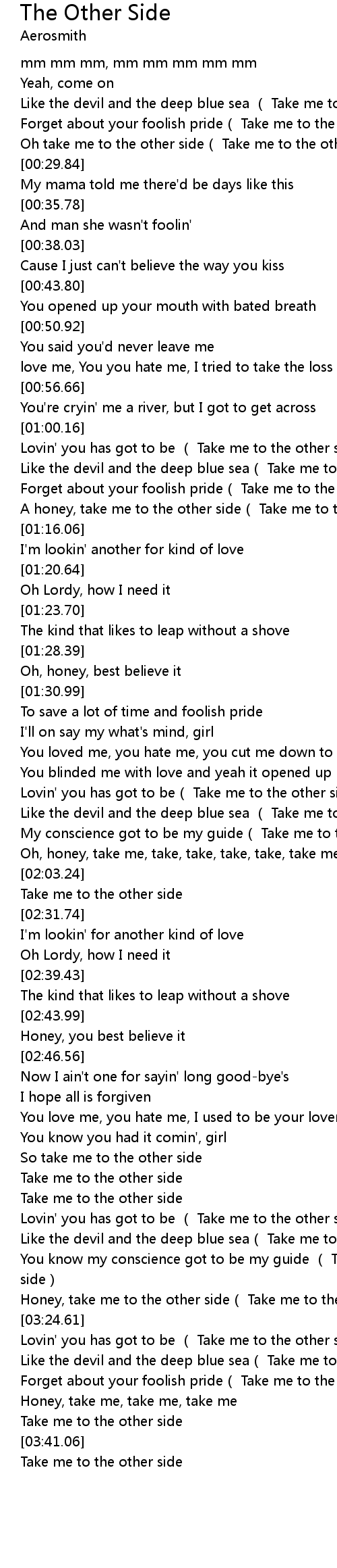 | [03:32.23] | Forget about your foolish pride( Take me to the other side) |
