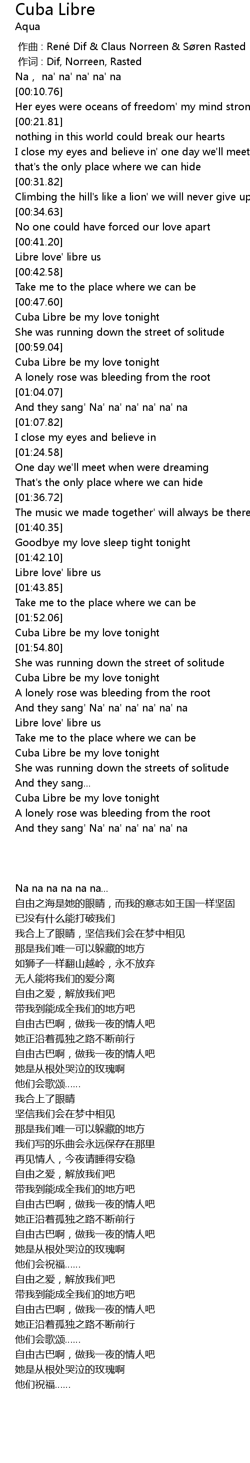 | [00:53.96] | 自由古巴啊,做我一夜的情人吧 |