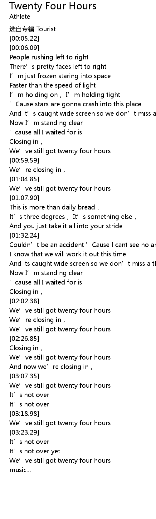 | [00:25.90] | I’m holding on, I’m holding tight |